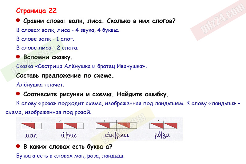 Подробные ответы к заданиям, расположенным на 22 странице 1 части азбуки авторов В.Г. Горецкий, В.А. Кирюшкин, Л.А. Виноградская для учащихся 1 класса.