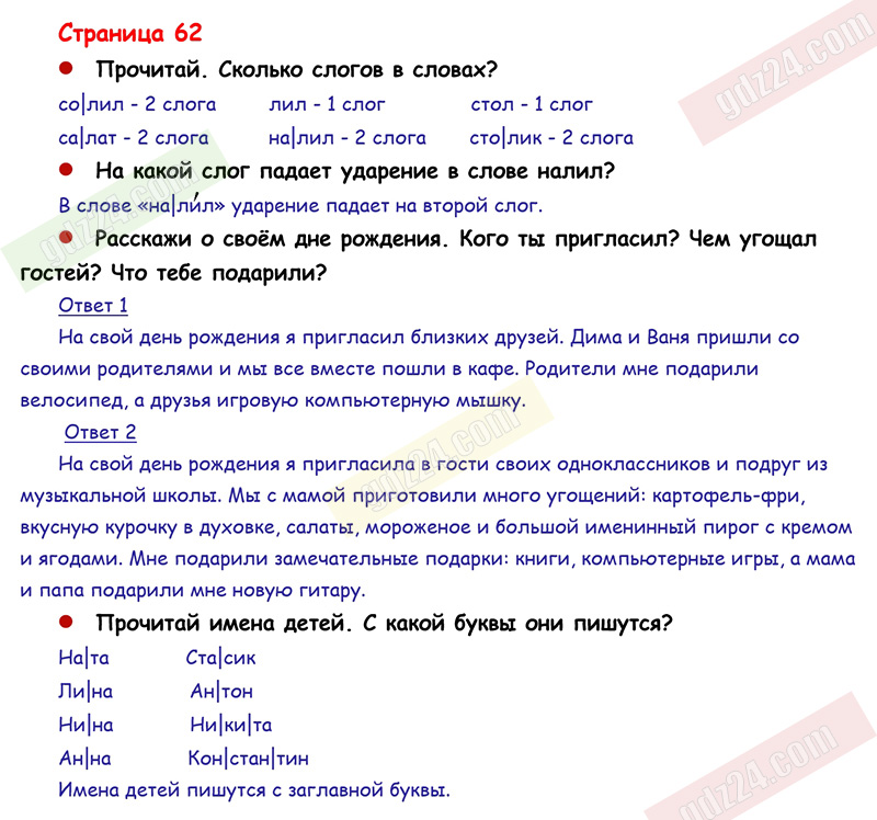 Подробные ответы к заданиям, расположенным на 62 странице 1 части азбуки авторов В.Г. Горецкий, В.А. Кирюшкин, Л.А. Виноградская для учащихся 1 класса.