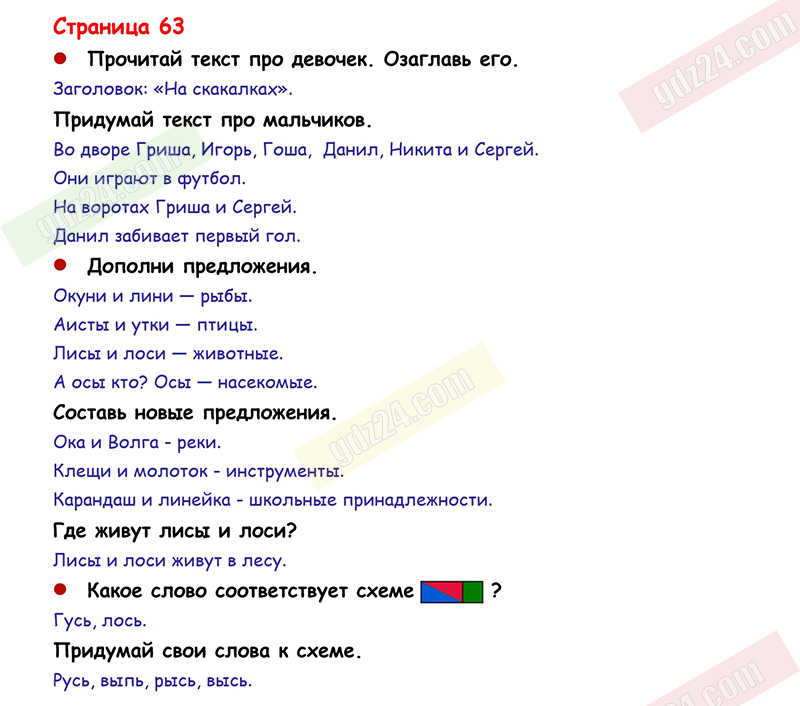 Подробные ответы к заданиям, расположенным на 63 странице 1 части азбуки авторов В.Г. Горецкий, В.А. Кирюшкин, Л.А. Виноградская для учащихся 1 класса.