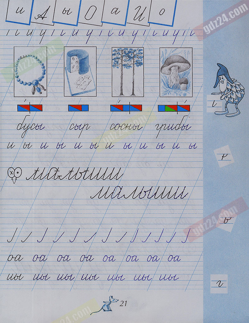 Подробные ответы к заданиям, расположенным на 21 странице 1 части чудо-прописей автора В.А. Илюхина для учащихся 1 класса.