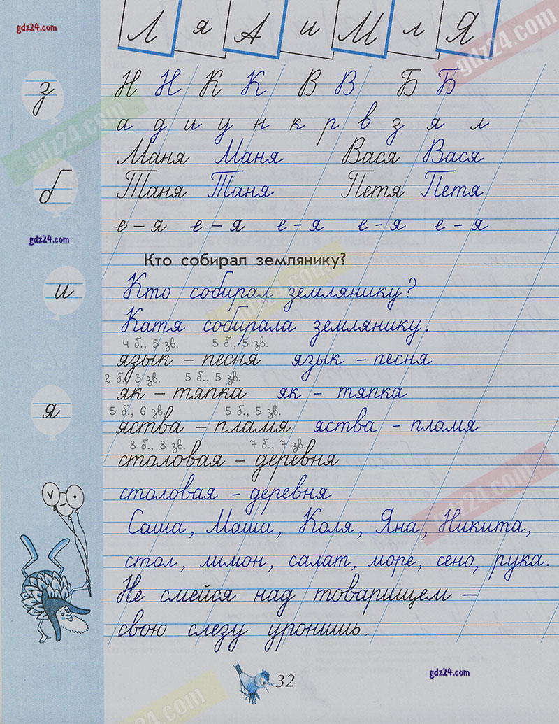 Подробные ответы к заданиям, расположенным на 32 странице 2 части чудо-прописей автора В.А. Илюхина для учащихся 1 класса.