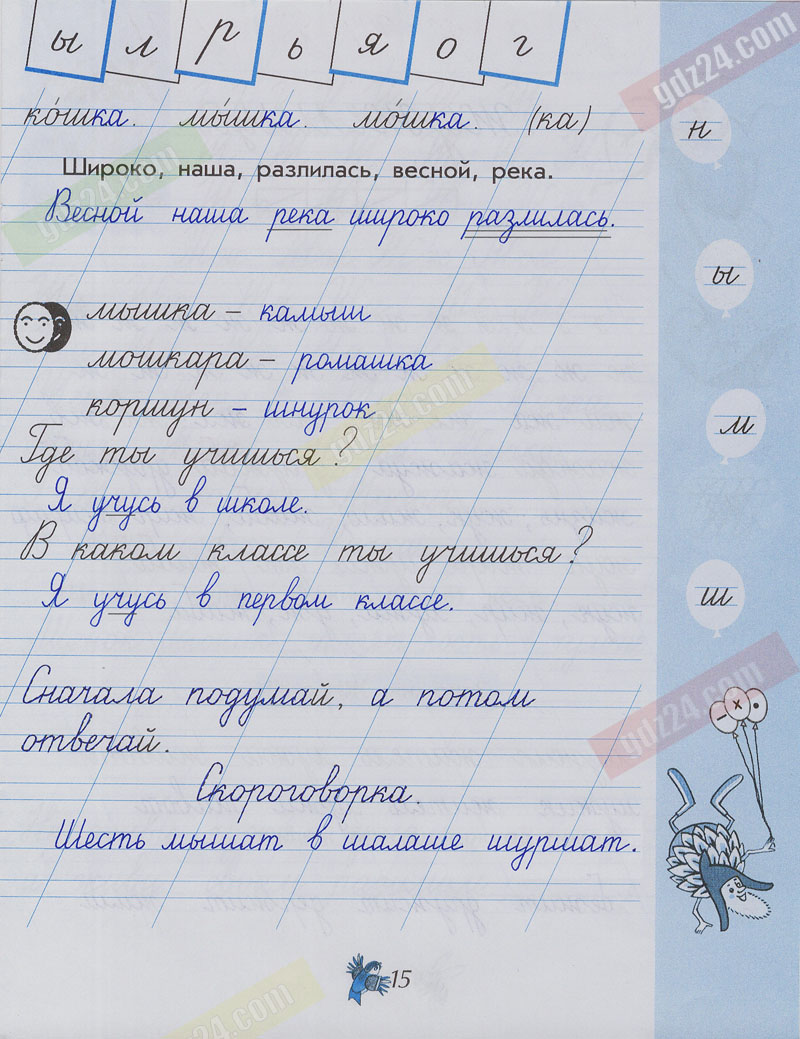 Подробные ответы к заданиям, расположенным на 15 странице 3 части чудо-прописей автора В.А. Илюхина для учащихся 1 класса.