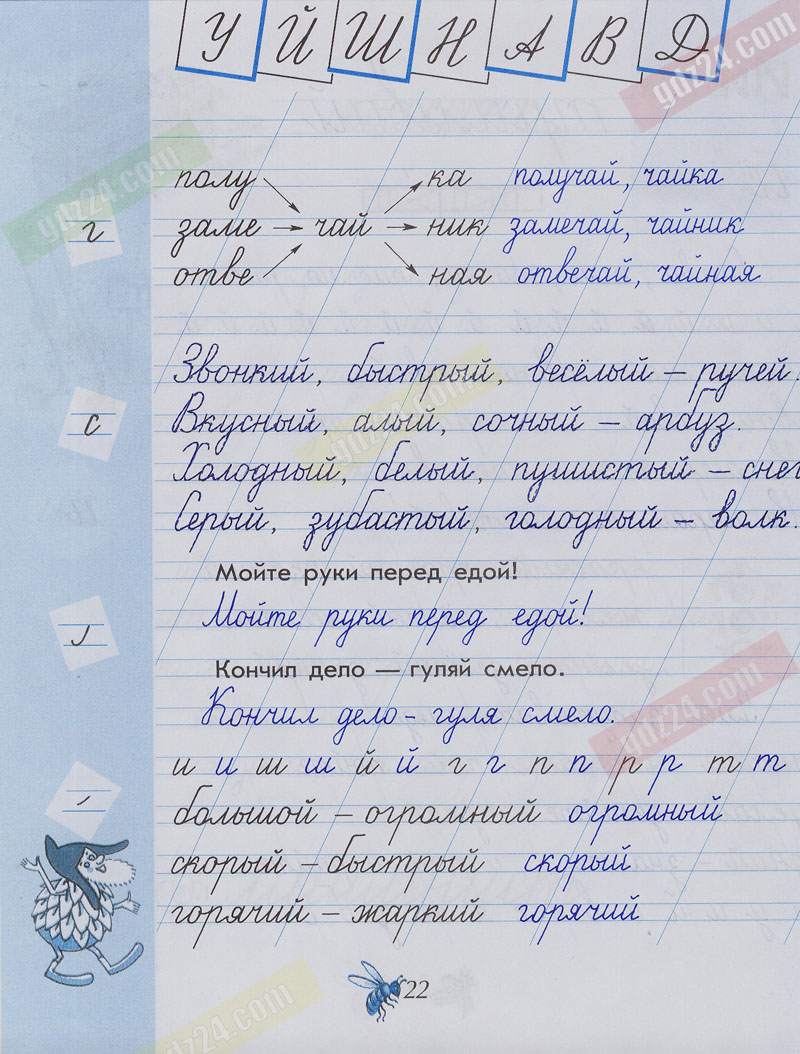 Подробные ответы к заданиям, расположенным на 22 странице 3 части чудо-прописей автора В.А. Илюхина для учащихся 1 класса.