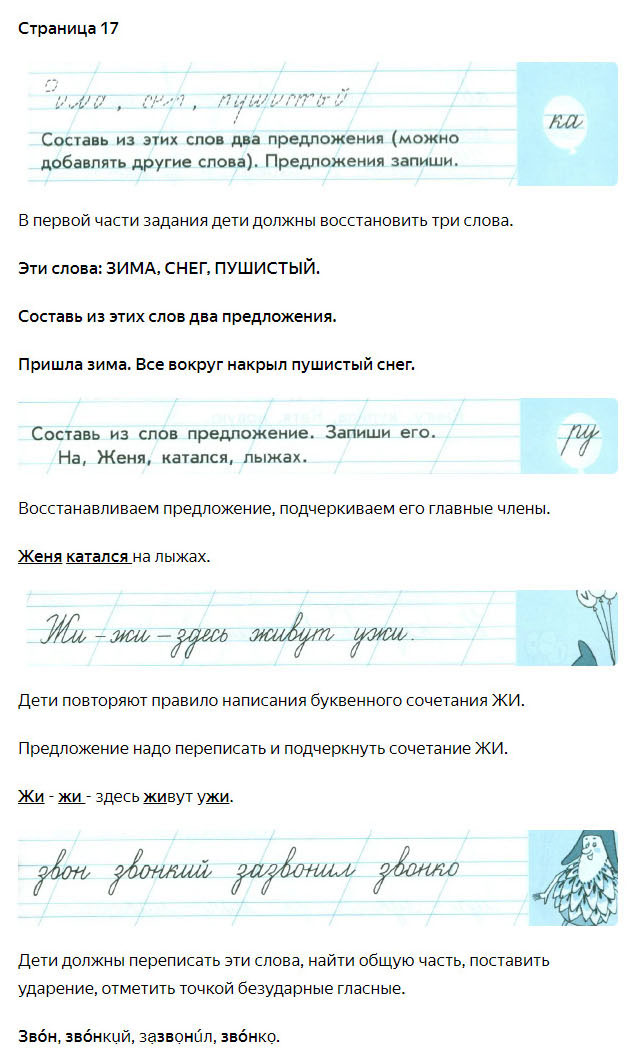 Подробные ответы к заданиям, расположенным на 17 странице 4 части чудо-прописей автора В.А. Илюхина для учащихся 1 класса.