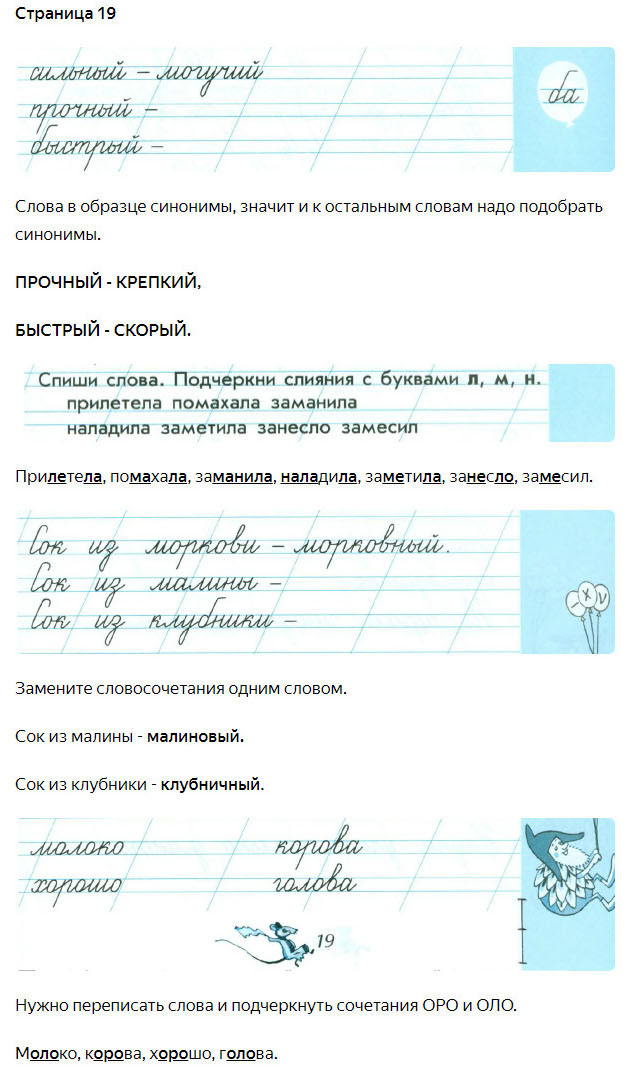 Подробные ответы к заданиям, расположенным на 19 странице 4 части чудо-прописей автора В.А. Илюхина для учащихся 1 класса.