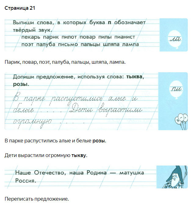 Подробные ответы к заданиям, расположенным на 21 странице 4 части чудо-прописей автора В.А. Илюхина для учащихся 1 класса.