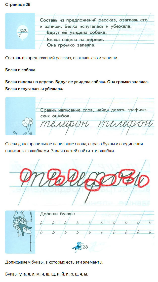 Подробные ответы к заданиям, расположенным на 26 странице 4 части чудо-прописей автора В.А. Илюхина для учащихся 1 класса.