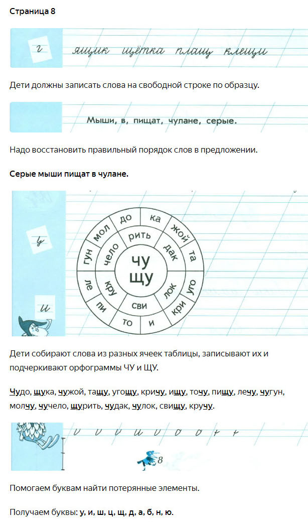 Подробные ответы к заданиям, расположенным на 8 странице 4 части чудо-прописей автора В.А. Илюхина для учащихся 1 класса.