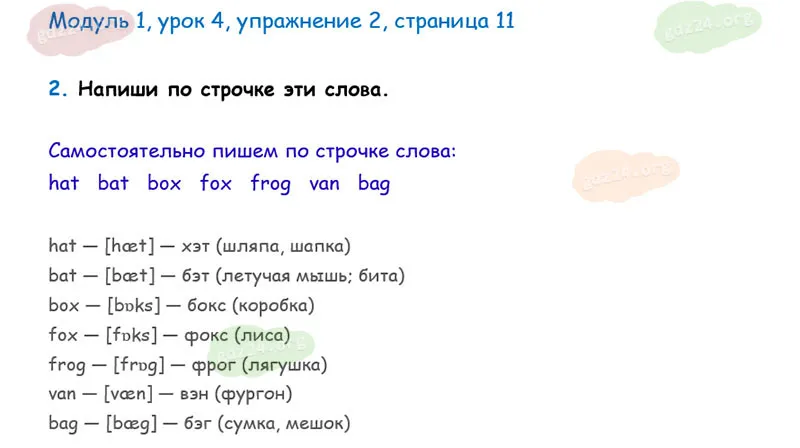 Подробные ответы к 2 заданию, 1 модуля, 4 урока рабочей тетради О. В. Афанасьевой, К. М. Барановой, И. В. Михеевой 2025 года ФГОС, 2 класс 1 часть. Модуль 1. Давайте познакомимся.