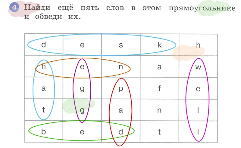 Найди еще пять слов в этом прямоугольнике и обведи их.