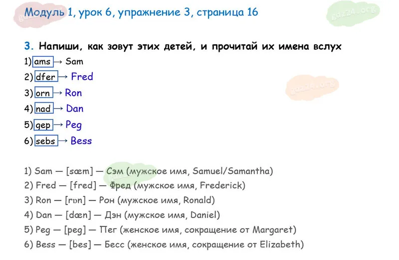 Подробные ответы к 3 заданию, 1 модуля, 6 урока рабочей тетради О. В. Афанасьевой, К. М. Барановой, И. В. Михеевой 2025 года ФГОС, 2 класс 1 часть. Модуль 1. Давайте познакомимся.