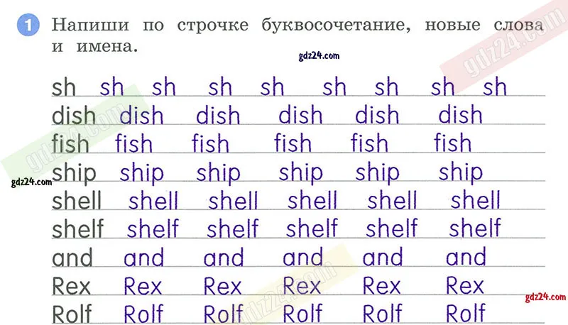 Напиши по строчке буквосочетание, новые слова и имена.