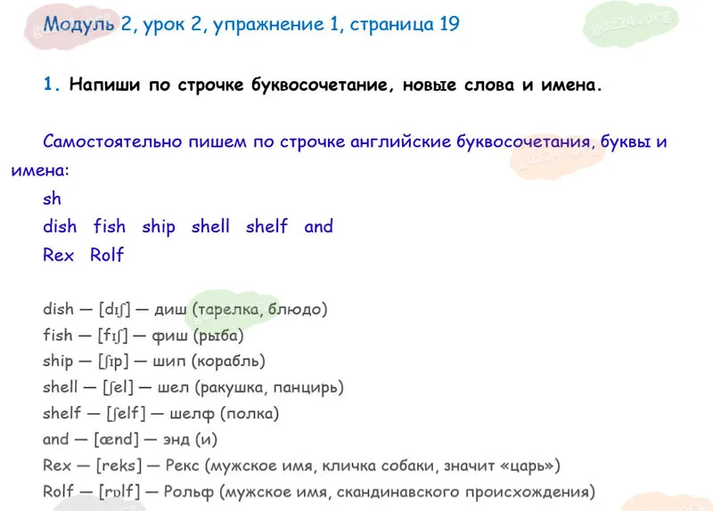 Подробные ответы к 1 заданию, 2 модуля, 2 урока рабочей тетради О. В. Афанасьевой, К. М. Барановой, И. В. Михеевой 2025 года ФГОС, 2 класс 1 часть. Модуль 2. Продолжаем знакомиться.