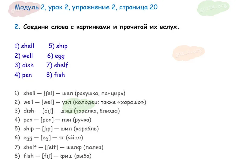 Подробные ответы к 2 заданию, 2 модуля, 2 урока рабочей тетради О. В. Афанасьевой, К. М. Барановой, И. В. Михеевой 2025 года ФГОС, 2 класс 1 часть. Модуль 2. Продолжаем знакомиться.