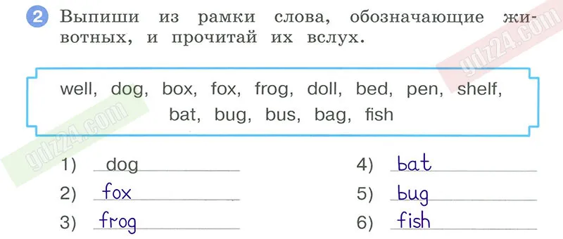 Выпиши из рамки слова, обозначающие животных, и прочитай их вслух.