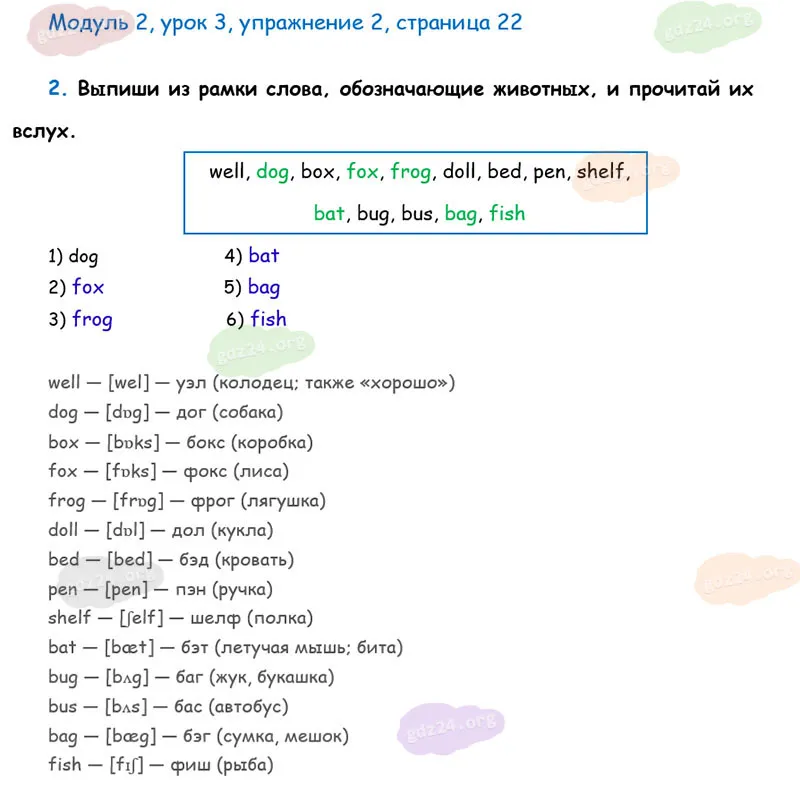 Подробные ответы к 2 заданию, 2 модуля, 3 урока рабочей тетради О. В. Афанасьевой, К. М. Барановой, И. В. Михеевой 2025 года ФГОС, 2 класс 1 часть. Модуль 2. Продолжаем знакомиться.