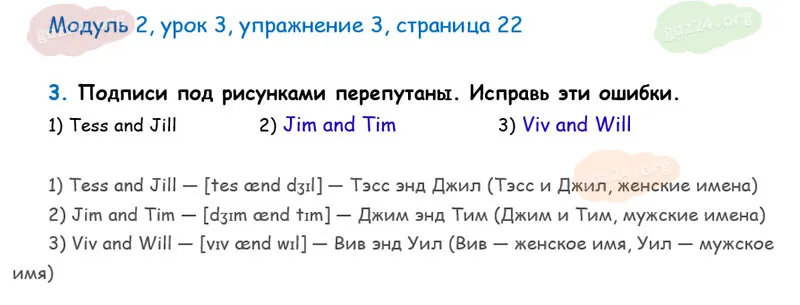 Подробные ответы к 3 заданию, 2 модуля, 3 урока рабочей тетради О. В. Афанасьевой, К. М. Барановой, И. В. Михеевой 2025 года ФГОС, 2 класс 1 часть. Модуль 2. Продолжаем знакомиться.