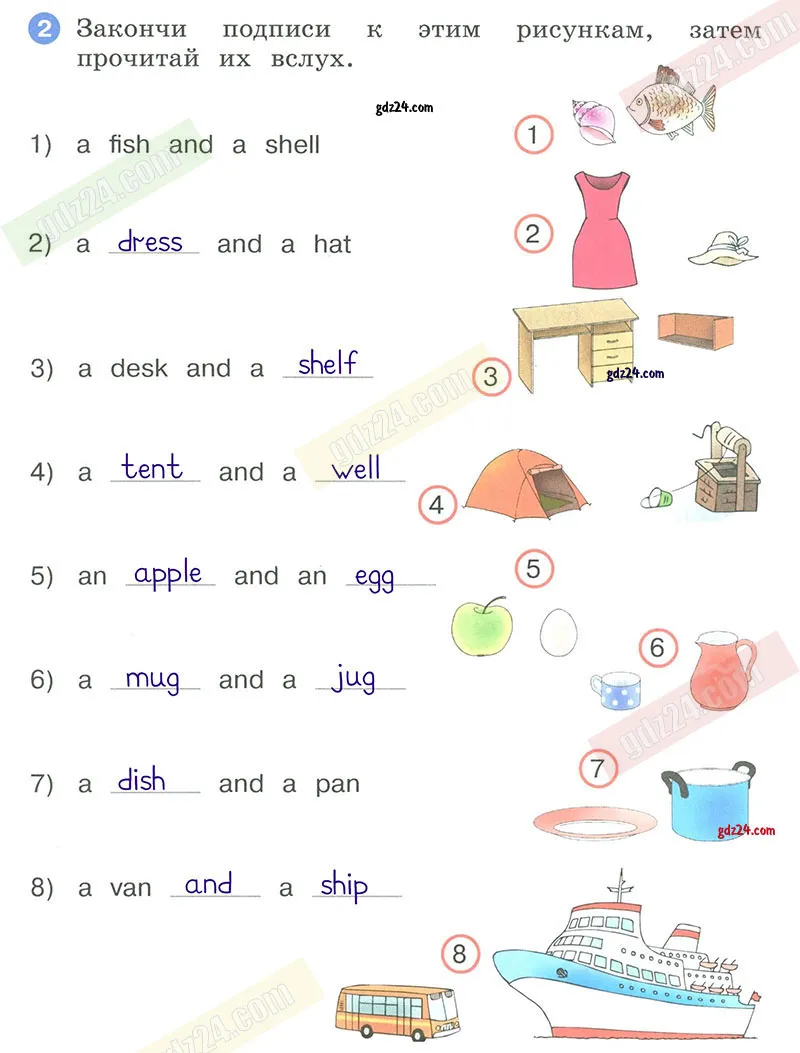 Закончи подписи к этим рисункам, затем прочитай их вслух.