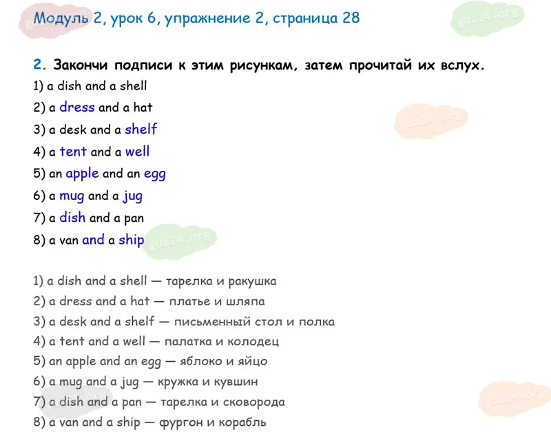 Подробные ответы к 2 заданию, 2 модуля, 6 урока рабочей тетради О. В. Афанасьевой, К. М. Барановой, И. В. Михеевой 2025 года ФГОС, 2 класс 1 часть. Модуль 2. Продолжаем знакомиться.