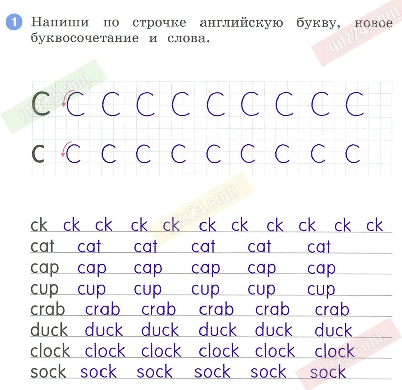 Напиши по строчке английскую букву, новое буквосочетание и слова.