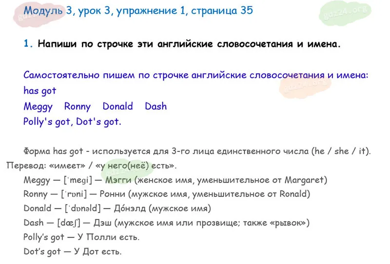 Подробные ответы к 1 заданию, 3 модуля, 3 урока рабочей тетради О. В. Афанасьевой, К. М. Барановой, И. В. Михеевой 2025 года ФГОС, 2 класс 1 часть. Модуль 3. Вот мои игрушки и питомцы.