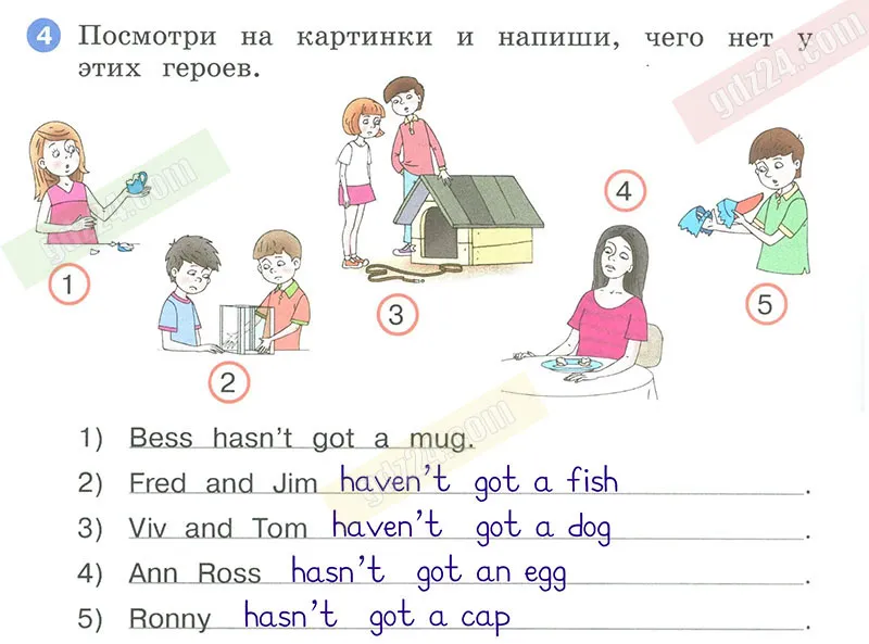 Посмотри на картинки и напиши, чего нет у этих героев.