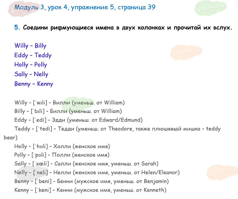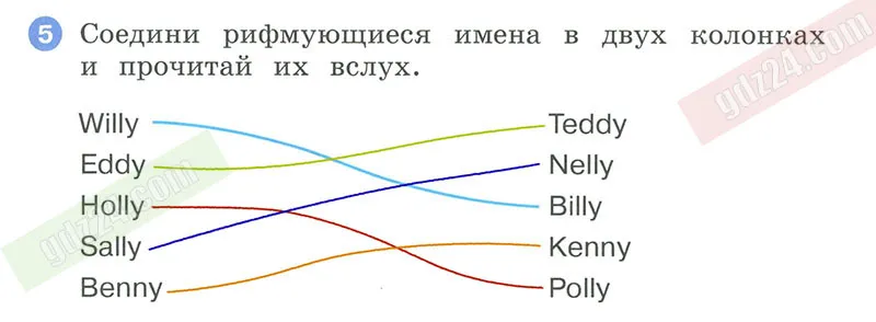Соедини рифмующиеся имена в двух колонках и прочитай их вслух.