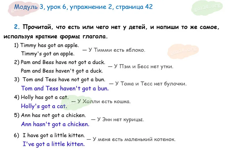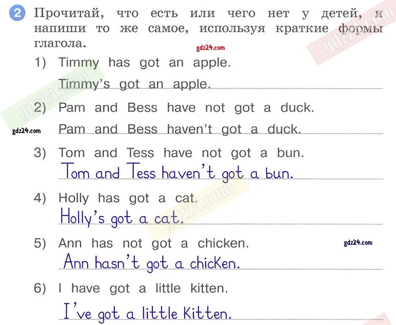 Прочитай, что есть или чего нет у детей, и напиши то же самое, используя краткие формы глагола.