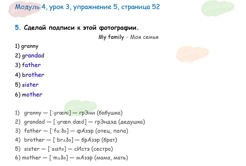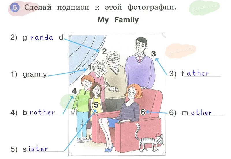 Подробные ответы к 5 заданию, 4 модуля, 3 урока рабочей тетради О. В. Афанасьевой, К. М. Барановой, И. В. Михеевой 2025 года ФГОС, 2 класс 1 часть. Модуль 4. Вот моя семья.