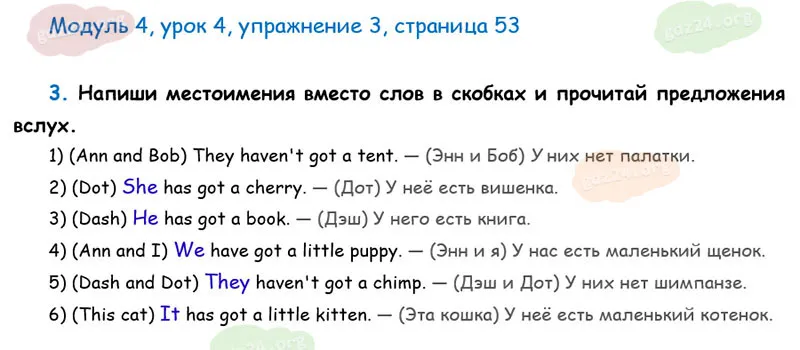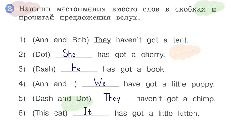 Напиши местоимения вместо слов в скобках и прочитай предложения вслух.