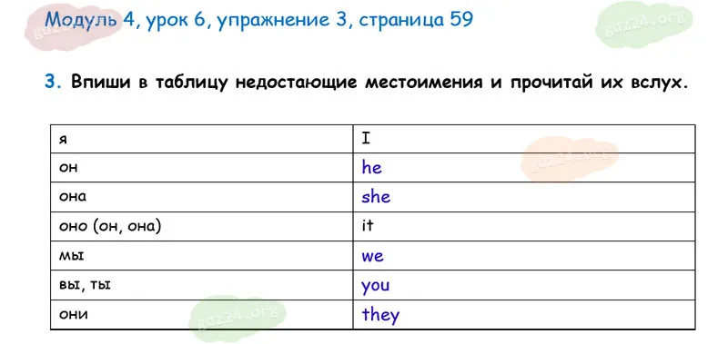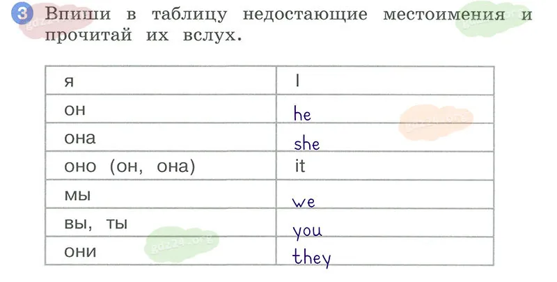 Впиши в таблицу недостающие местоимения и прочитай их вслух.