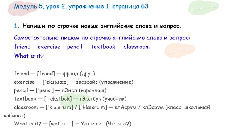 Подробные ответы к 1 заданию, 5 модуля, 2 урока рабочей тетради О. В. Афанасьевой, К. М. Барановой, И. В. Михеевой 2025 года ФГОС, 2 класс 1 часть. Модуль 5. Вот моя школа и мои друзья.