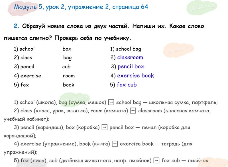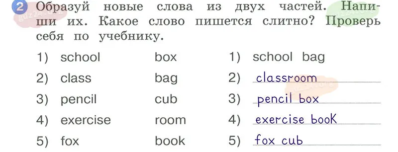 Подробные ответы к 2 заданию, 5 модуля, 2 урока рабочей тетради О. В. Афанасьевой, К. М. Барановой, И. В. Михеевой 2025 года ФГОС, 2 класс 1 часть. Модуль 5. Вот моя школа и мои друзья.