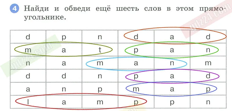 Найди и обведи еще шесть слов в этом прямоугольнике.
