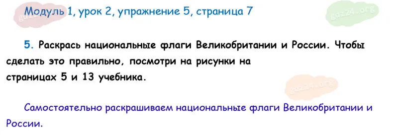 Подробные ответы к 5 заданию, 1 модуля, 2 урока рабочей тетради О. В. Афанасьевой, К. М. Барановой, И. В. Михеевой 2025 года ФГОС, 2 класс 1 часть. Модуль 1. Давайте познакомимся.