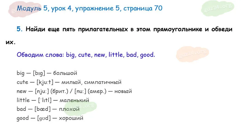 Подробные ответы к 5 заданию, 5 модуля, 4 урока рабочей тетради О. В. Афанасьевой, К. М. Барановой, И. В. Михеевой 2025 года ФГОС, 2 класс 1 часть. Модуль 5. Вот моя школа и мои друзья.