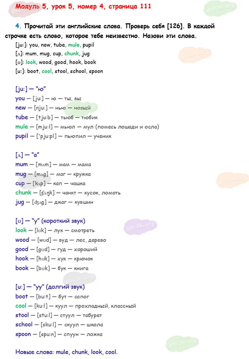Подробные ответы к 4 заданию на 111 странице учебника О. В. Афанасьевой, К. М. Барановой, И. В. Михеевой 2025 года ФГОС, 2 класс 1 часть. Модуль 5. Вот моя школа и мои друзья.