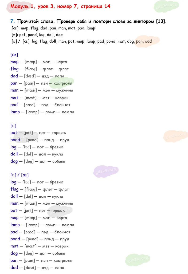 Подробные ответы к 7 заданию на 14 странице учебника О. В. Афанасьевой, К. М. Барановой, И. В. Михеевой 2025 года ФГОС, 2 класс 1 часть. Модуль 1. Давайте познакомимся.