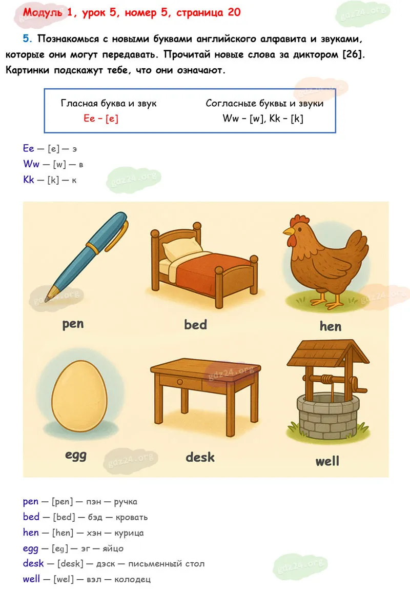 Подробные ответы к 5 заданию на 20 странице учебника О. В. Афанасьевой, К. М. Барановой, И. В. Михеевой 2025 года ФГОС, 2 класс 1 часть. Модуль 1. Давайте познакомимся.