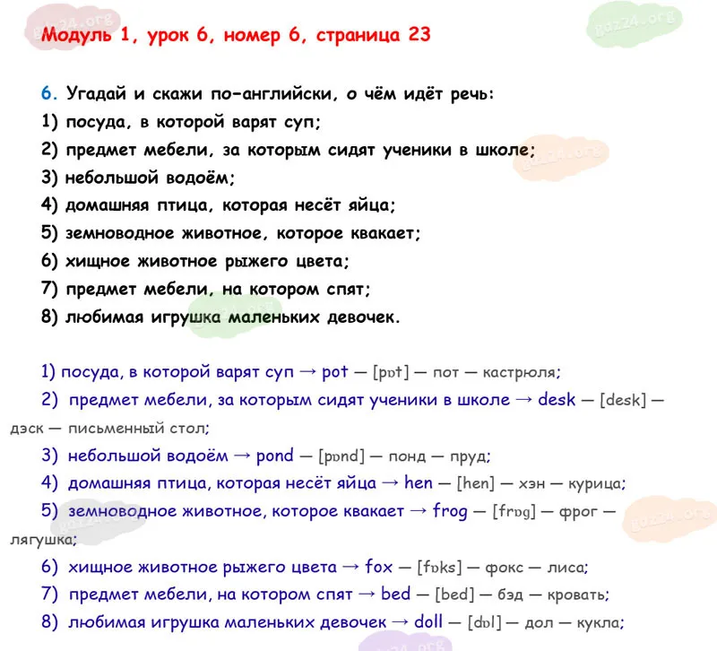 Подробные ответы к 6 заданию на 23 странице учебника О. В. Афанасьевой, К. М. Барановой, И. В. Михеевой 2025 года ФГОС, 2 класс 1 часть. Модуль 1. Давайте познакомимся.