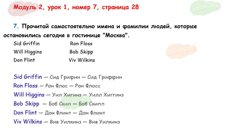 Подробные ответы к 7 заданию на 28 странице учебника О. В. Афанасьевой, К. М. Барановой, И. В. Михеевой 2025 года ФГОС, 2 класс 1 часть. Модуль 2. Продолжаем знакомиться.