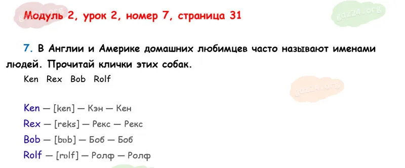 Подробные ответы к 7 заданию на 31 странице учебника О. В. Афанасьевой, К. М. Барановой, И. В. Михеевой 2025 года ФГОС, 2 класс 1 часть. Модуль 2. Продолжаем знакомиться.