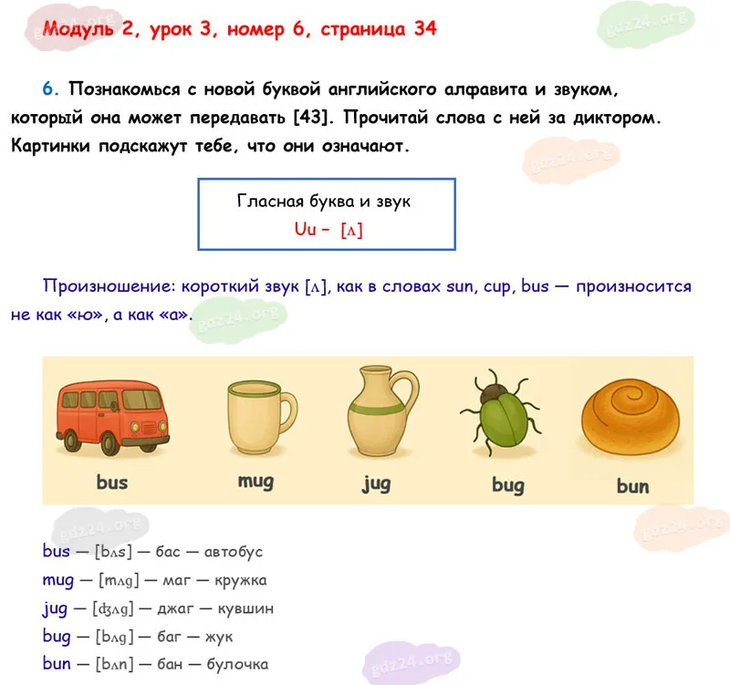 Подробные ответы к 6 заданию на 34 странице учебника О. В. Афанасьевой, К. М. Барановой, И. В. Михеевой 2025 года ФГОС, 2 класс 1 часть. Модуль 2. Продолжаем знакомиться.
