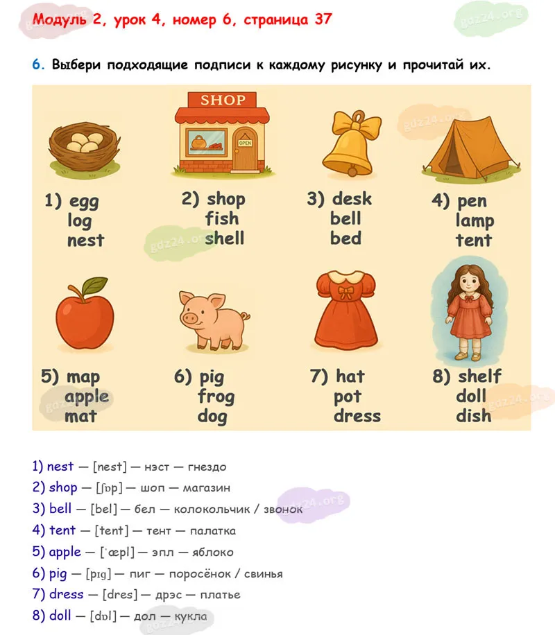 Подробные ответы к 6 заданию на 37 странице учебника О. В. Афанасьевой, К. М. Барановой, И. В. Михеевой 2025 года ФГОС, 2 класс 1 часть. Модуль 2. Продолжаем знакомиться.
