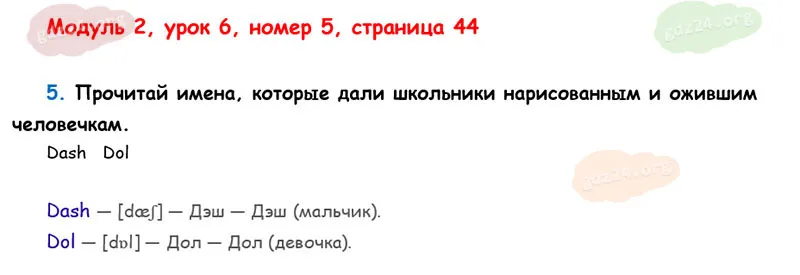 Подробные ответы к 5 заданию на 44 странице учебника О. В. Афанасьевой, К. М. Барановой, И. В. Михеевой 2025 года ФГОС, 2 класс 1 часть. Модуль 2. Продолжаем знакомиться.