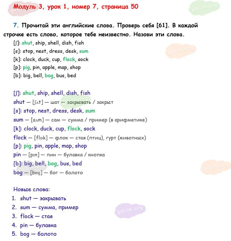 Подробные ответы к 7 заданию на 50 странице учебника О. В. Афанасьевой, К. М. Барановой, И. В. Михеевой 2025 года ФГОС, 2 класс 1 часть. Модуль 3. Вот мои игрушки и питомцы.