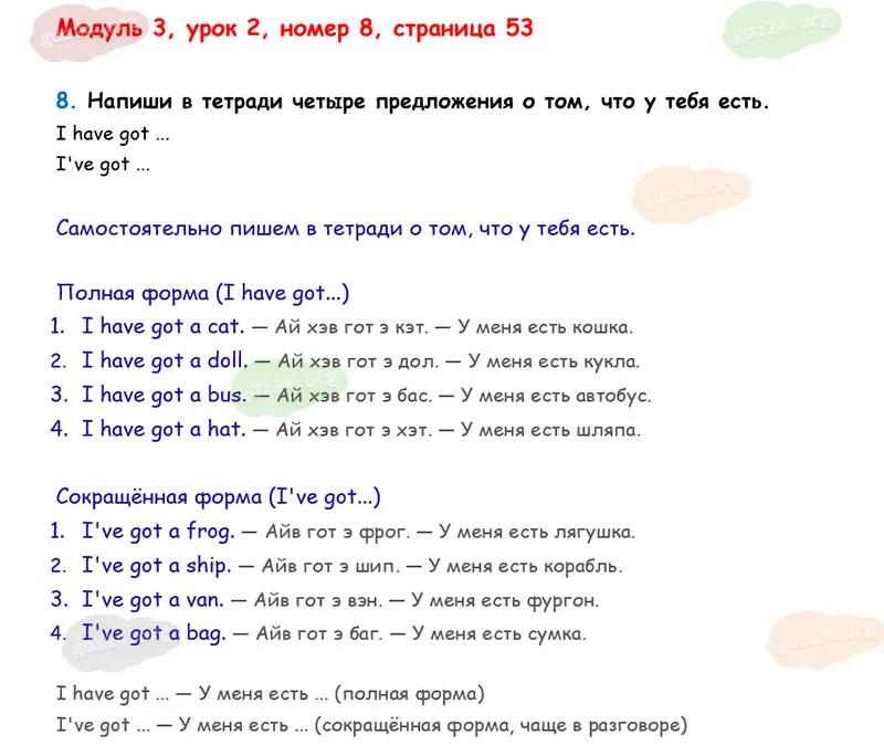 Подробные ответы к 8 заданию на 53 странице учебника О. В. Афанасьевой, К. М. Барановой, И. В. Михеевой 2025 года ФГОС, 2 класс 1 часть. Модуль 3. Вот мои игрушки и питомцы.