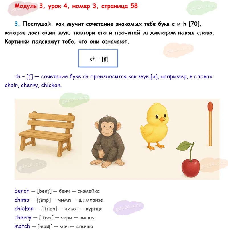 Подробные ответы к 3 заданию на 58 странице учебника О. В. Афанасьевой, К. М. Барановой, И. В. Михеевой 2025 года ФГОС, 2 класс 1 часть. Модуль 3. Вот мои игрушки и питомцы.