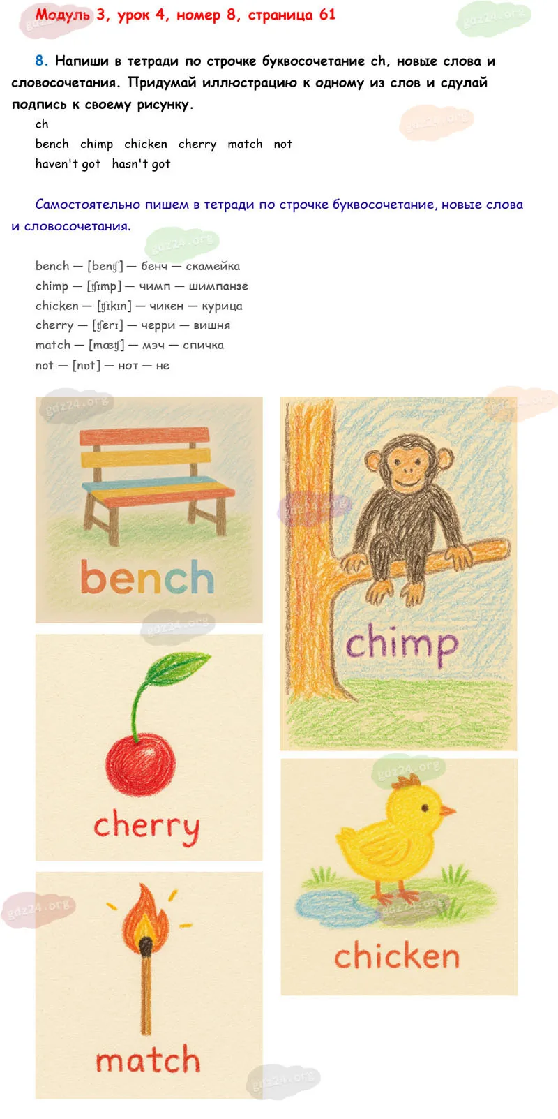 Подробные ответы к 8 заданию на 61 странице учебника О. В. Афанасьевой, К. М. Барановой, И. В. Михеевой 2025 года ФГОС, 2 класс 1 часть. Модуль 3. Вот мои игрушки и питомцы.