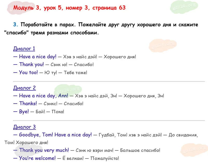 Подробные ответы к 3 заданию на 63 странице учебника О. В. Афанасьевой, К. М. Барановой, И. В. Михеевой 2025 года ФГОС, 2 класс 1 часть. Модуль 3. Вот мои игрушки и питомцы.